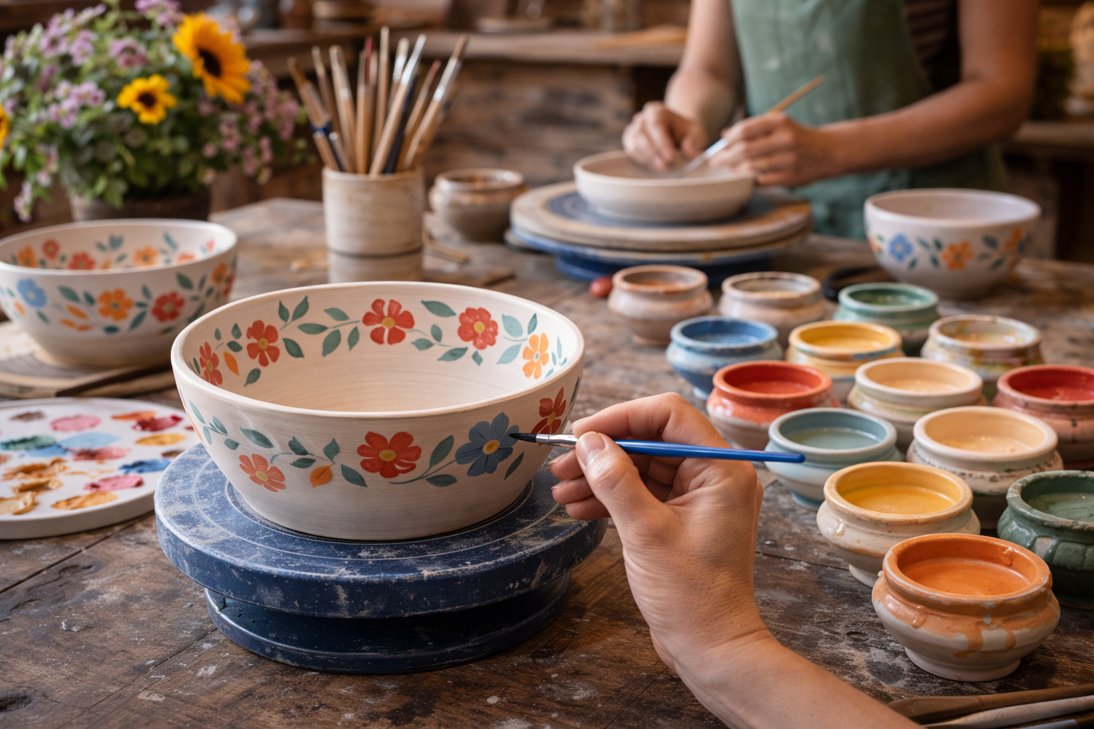 Schaal van keramiek vervaardigen en zelf beschilderen met fleurige motieven