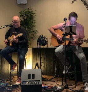DEUSJEVOO is een poging om het meeste en beste uit twee muzikanten te halen met een zo groot mogelijke afwisseling… Zo wordt er gebruik gemaakt van twee akoestische gitaren en ook af en toe een elektrische toets, hier en daar wat ritme en percussie, stompboxen, mondharmonica enz. om zo tot een zeer gevarieerd meerstemmig repertoire te komen met een afwisseling van gekende hits van o.a. The Beatles, Bruce Springsteen, Dire Straits, The Police tot Queen, Abba, Avicii, Coldplay en noem maar op (waarvan vele in een verrassend eigen kleedje en gecoverd) en ook wat eigen werk. Dus meezingen en ambi gegarandeerd!